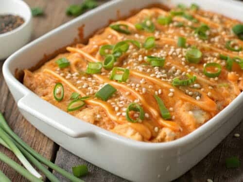 - Bang Bang Shrimp Casserole – Swap chicken for shrimp and reduce baking time.