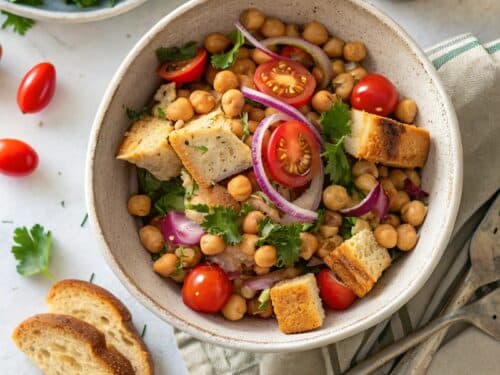 Looking for a vibrant, healthy meal that’s fast, filling, and full of flavor? Say hello to your new go-to lunch: Chickpea-Tuna Panzanella. This fresh take on traditional Italian bread salad features protein-packed chickpeas, sweet cherry tomatoes, crisp cucumbers, and flaky canned tuna—all brought together with a zesty vinaigrette and golden, toasted bread cubes.