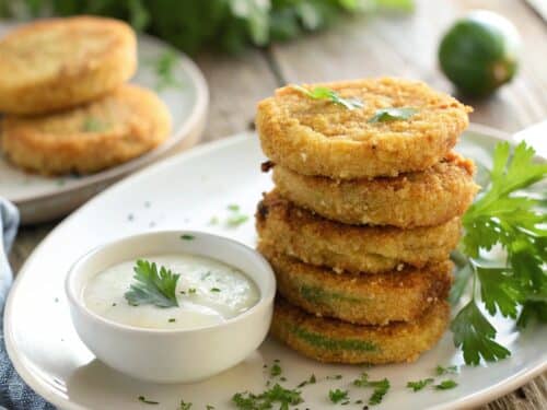 - Choose firm green tomatoes: Soft ones will fall apart when frying.