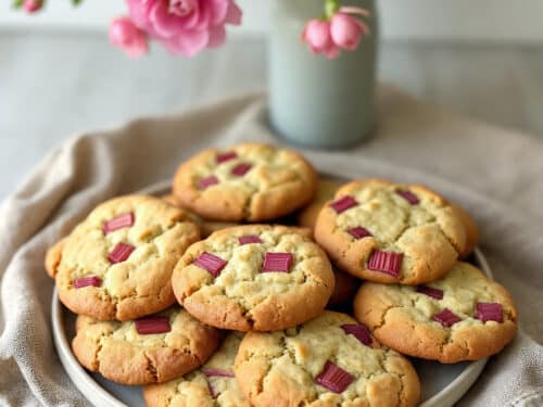 These rhubarb cookies are a must-bake when rhubarb is in season. They’re soft, fruity, and just the right amount of tart—perfect for anyone who loves fruit-forward baked goods without the fuss.