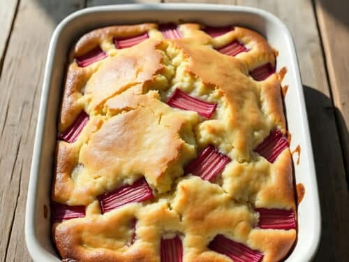 - Spiced Rhubarb: Add a sprinkle of cinnamon or nutmeg before the cake mix.